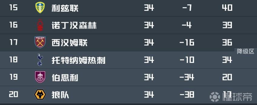 剩余4轮能否逃离降级区?热刺与森林差5分,比西汉姆联少2分