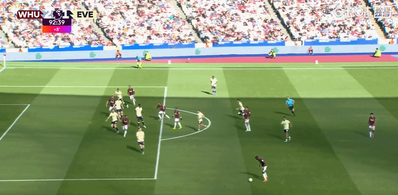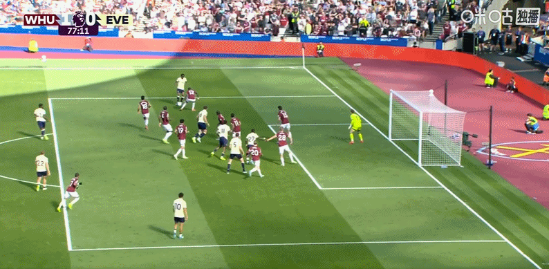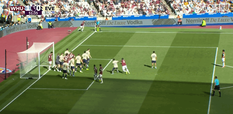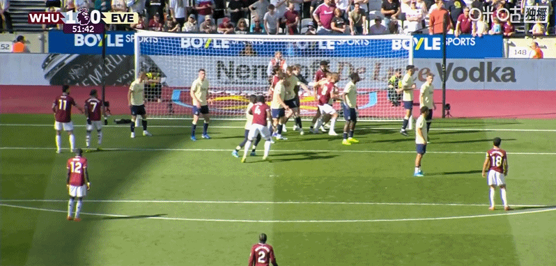 关键事件第52分钟,鲍恩发出右侧角球,绍切克头球破门!西汉姆联1-0埃弗顿