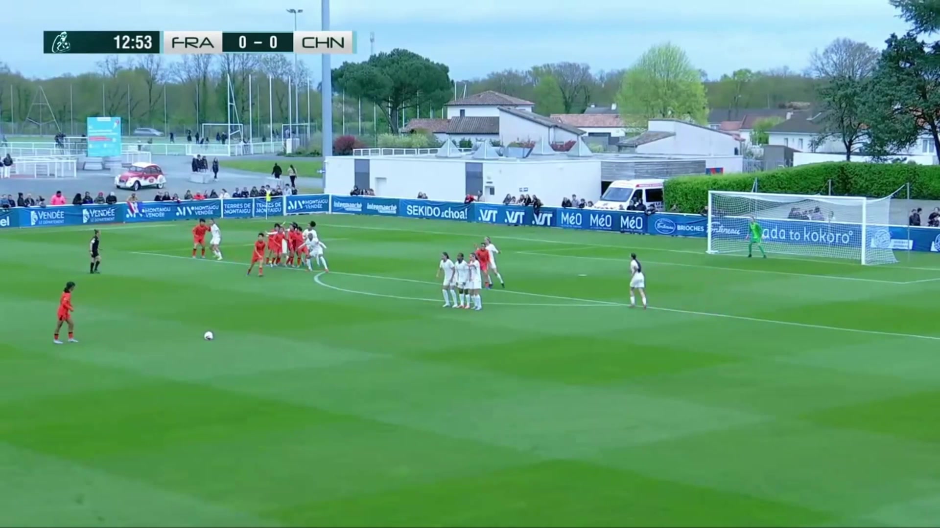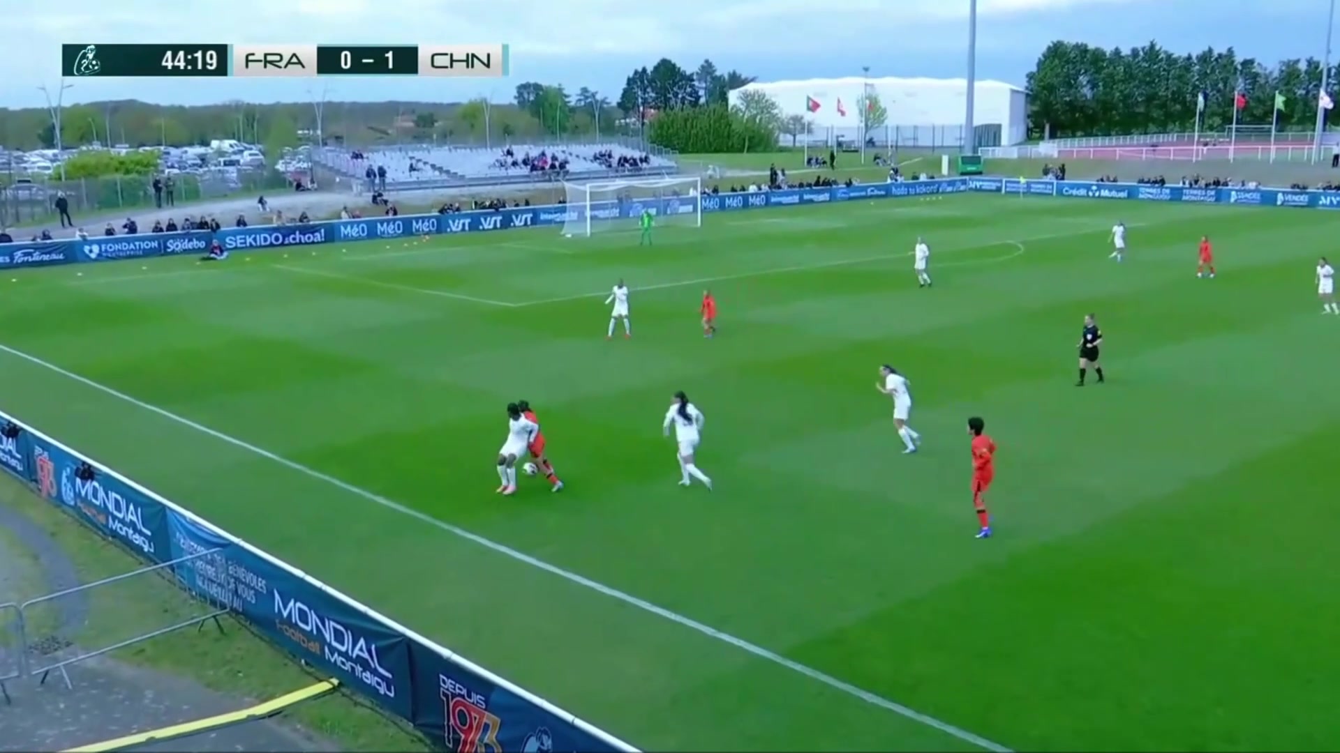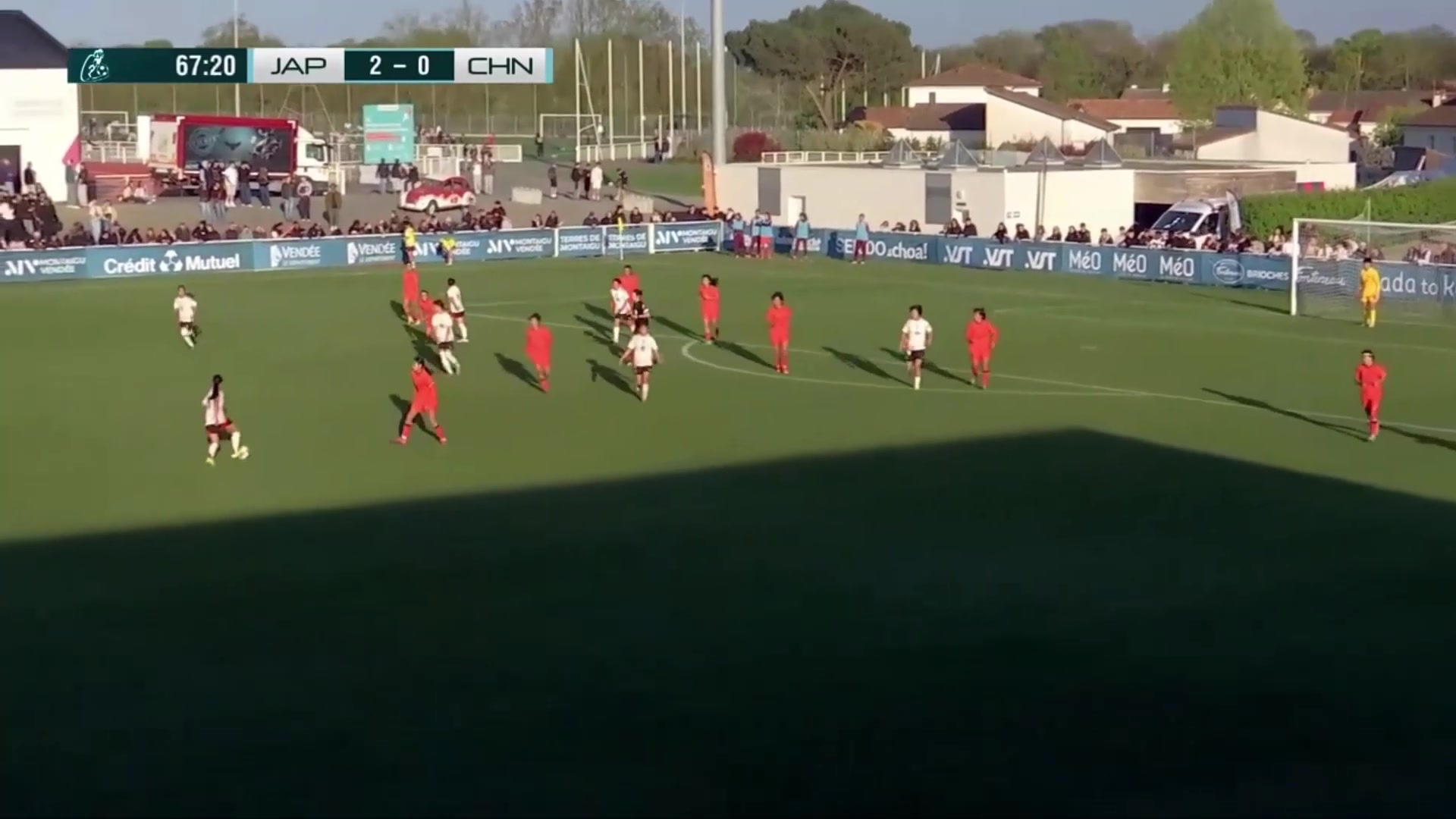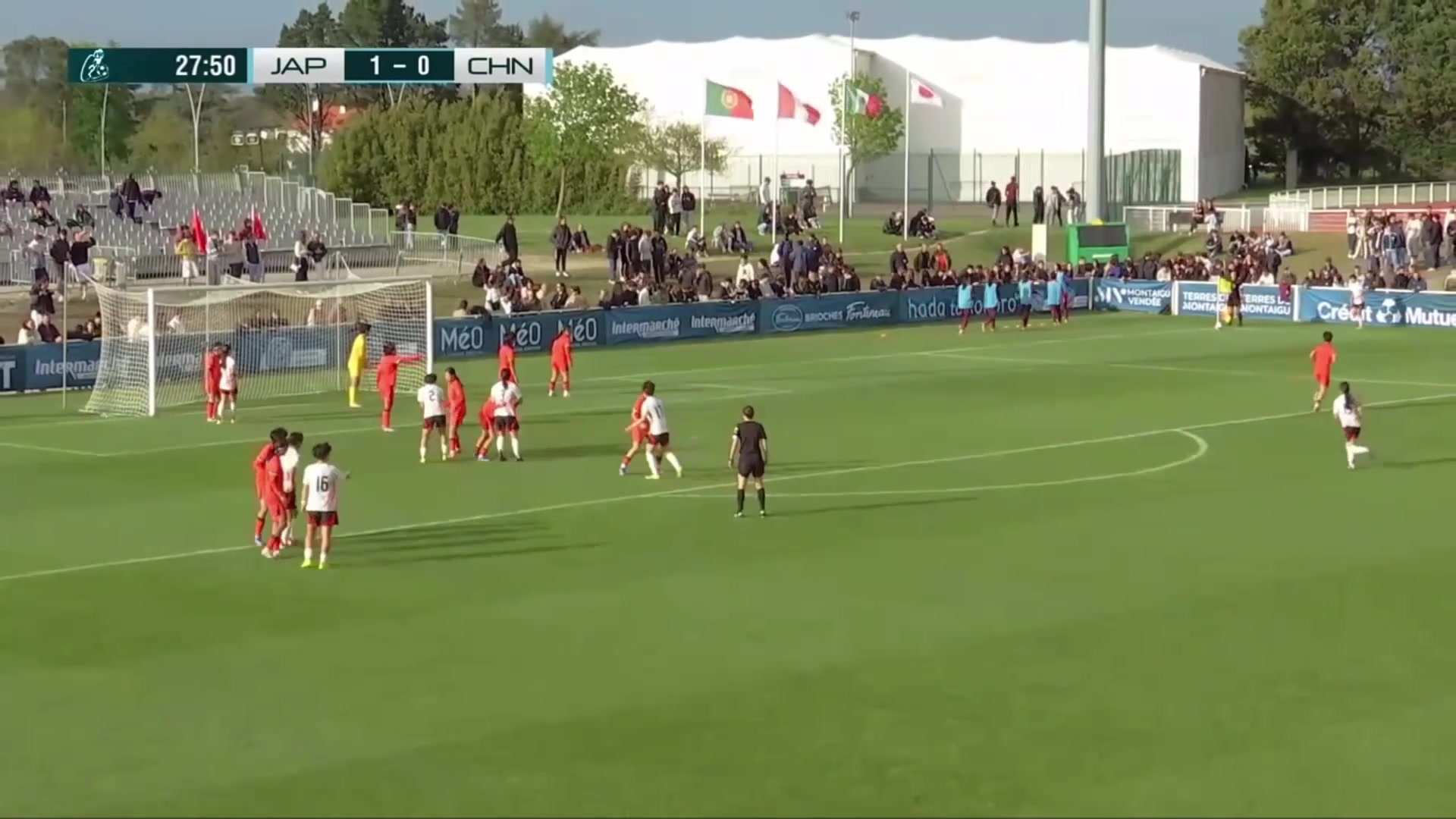 周瑾彤任意球直挂死角中国女足U16 1-0领先法国女足U16