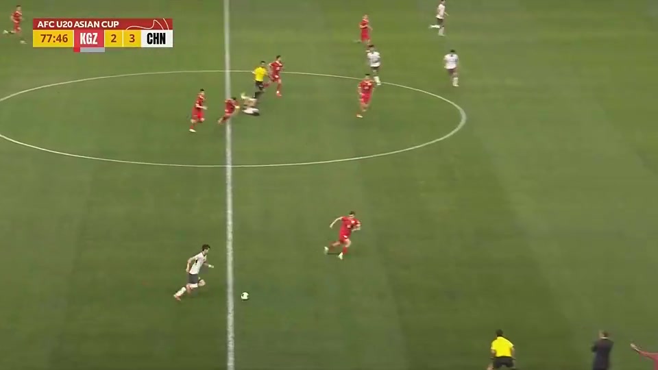 被压着打国足U23球员自己摔出场外丢失球权