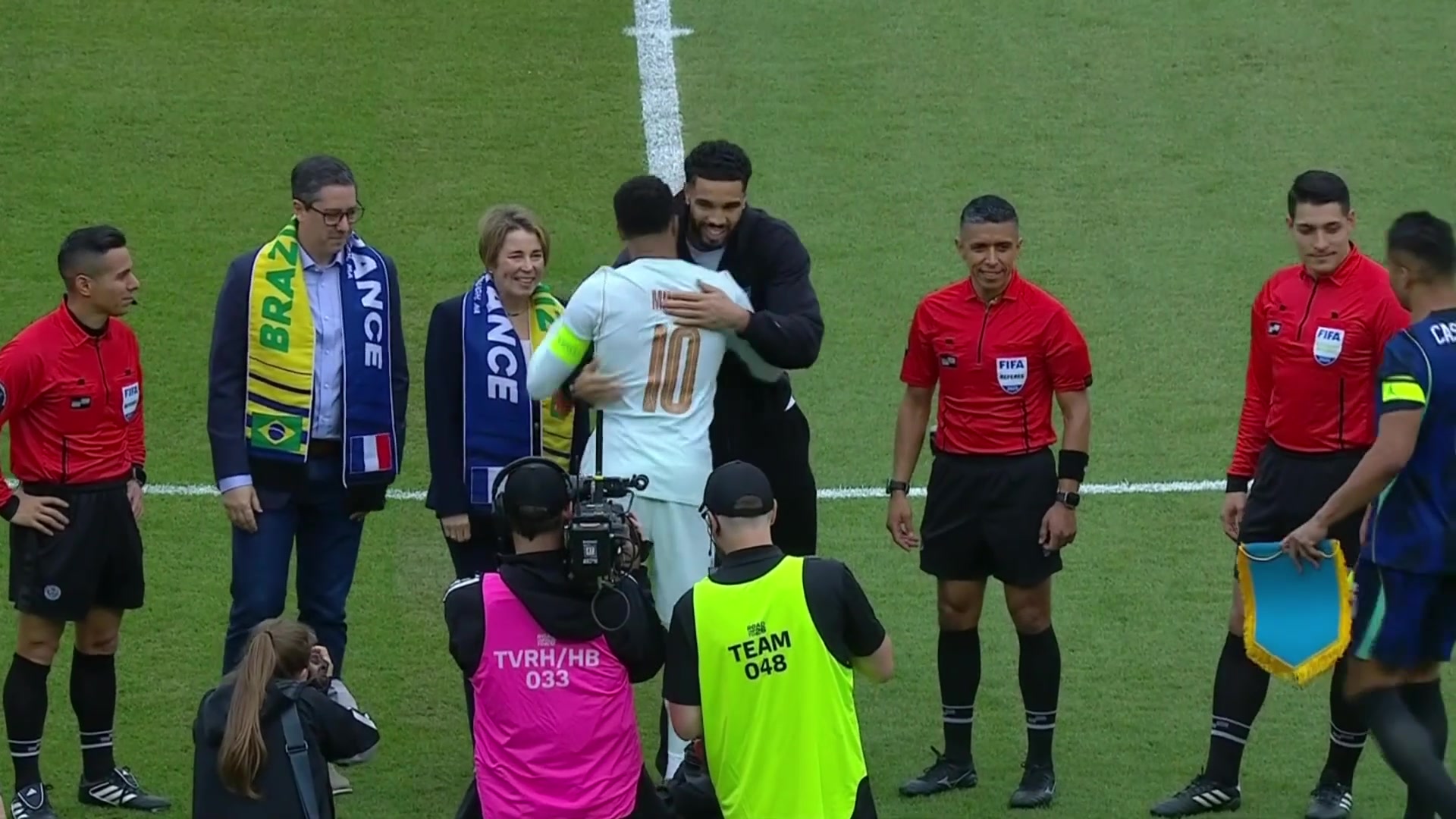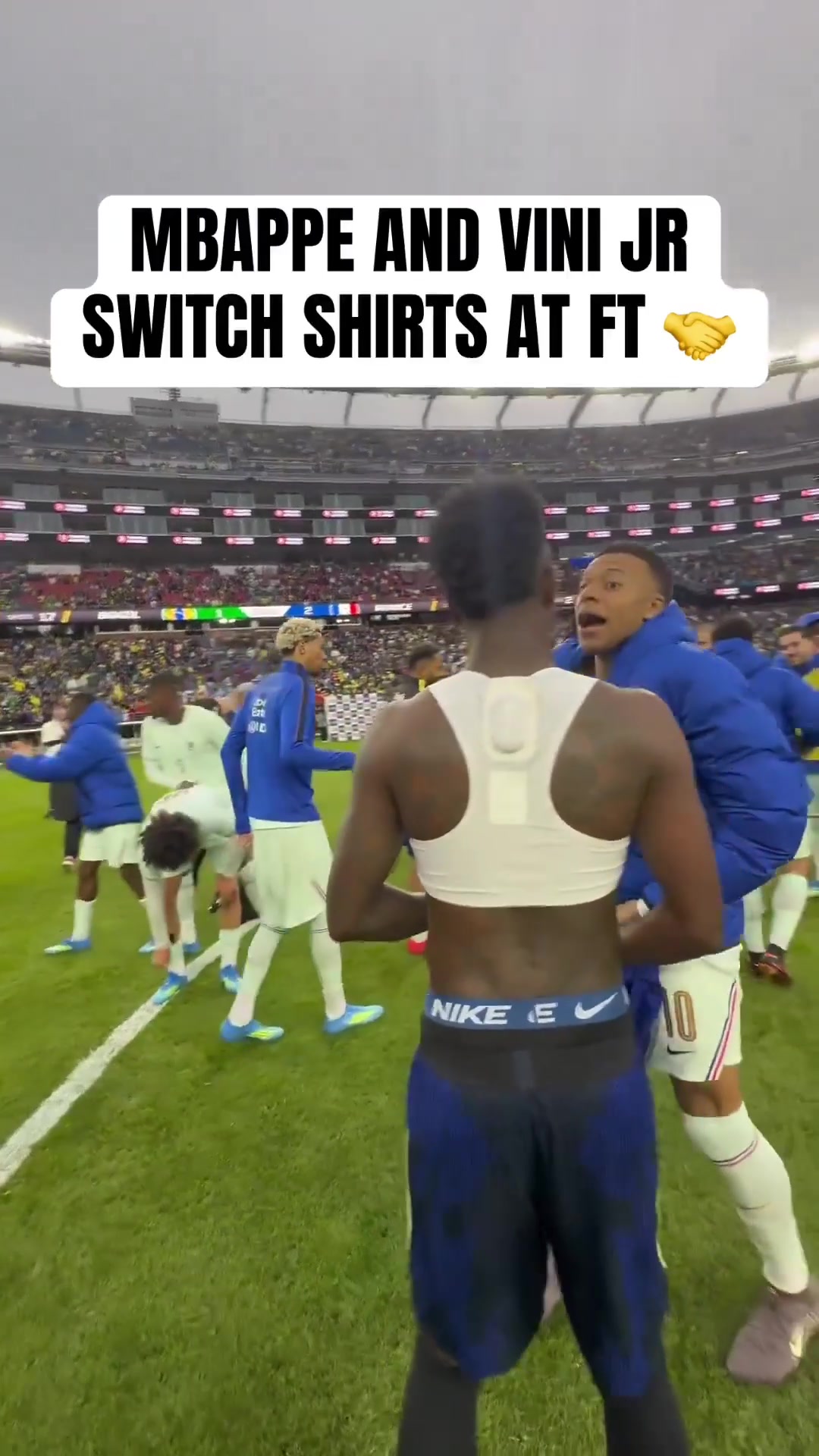 友谊赛法国2-1险胜巴西姆巴佩维尼修斯赛后互换球衣