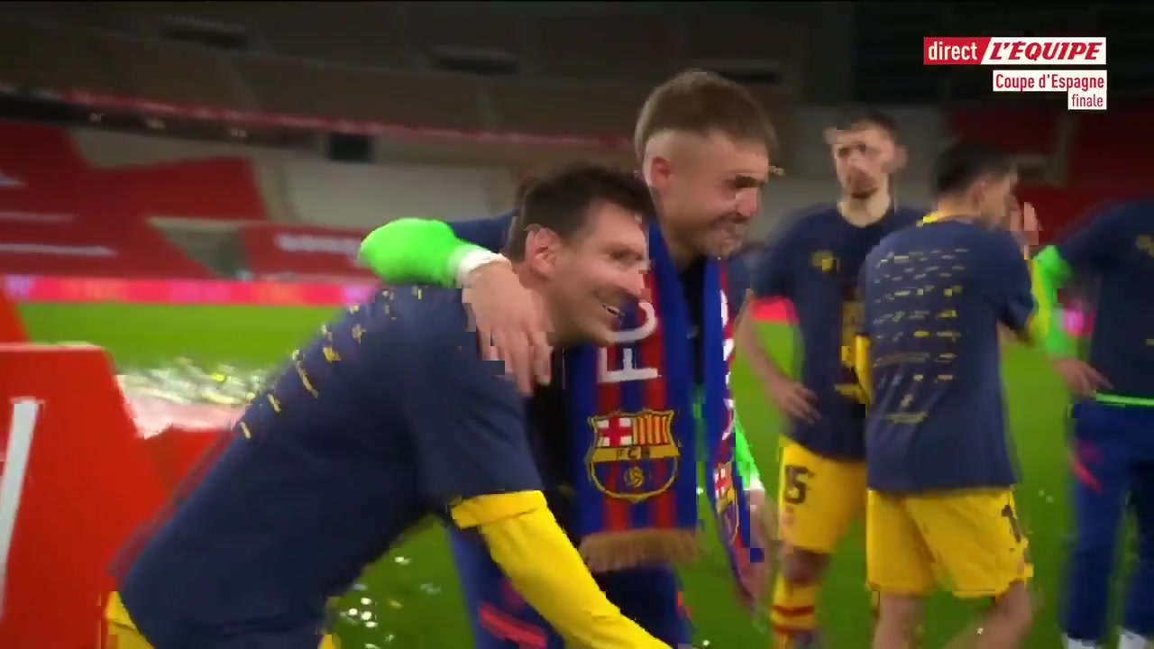梅西才是真正的奖杯巴萨夺国王杯那一刻所有人排队和梅西合影