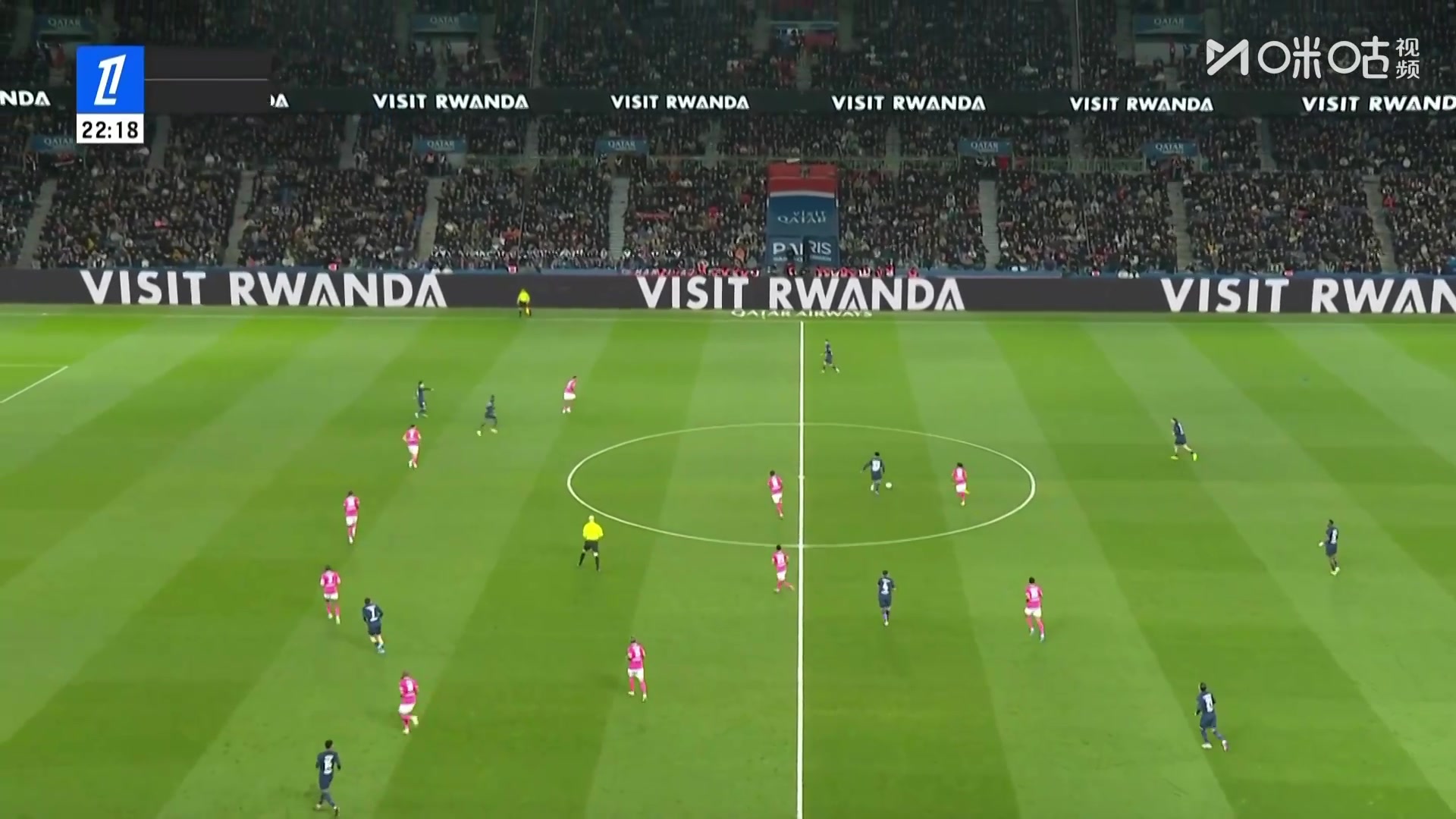 大巴黎快速反击李刚仁直塞登贝莱爆射击中立柱