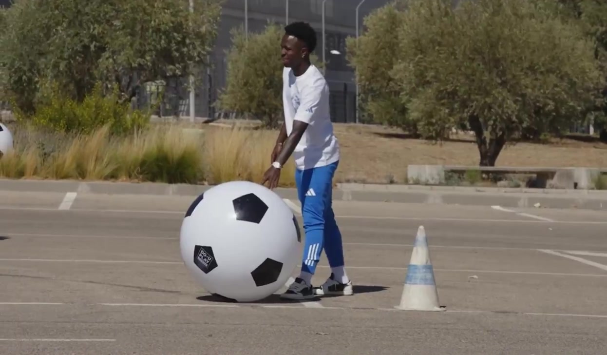 太会玩了皇马球员开着宝马踢足球这脚世界波你给几分