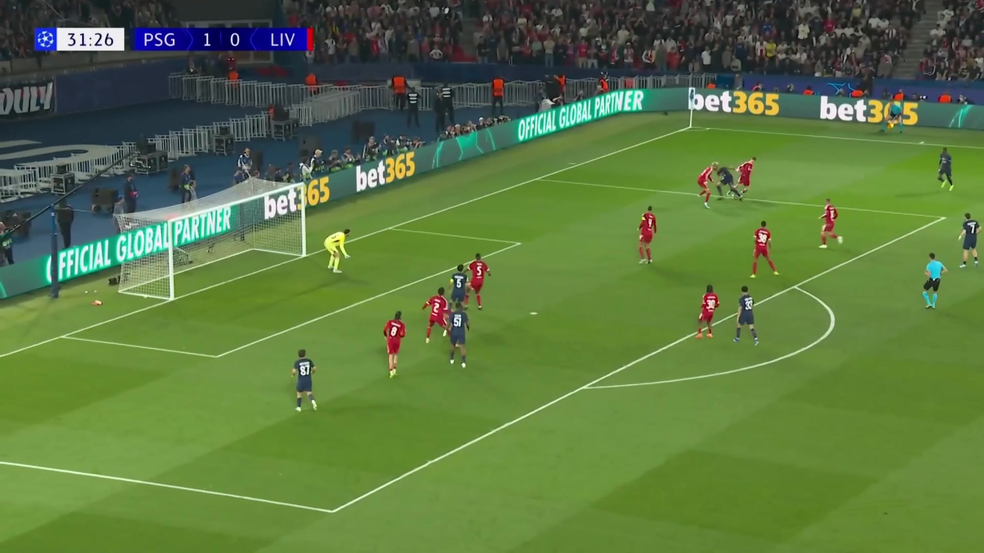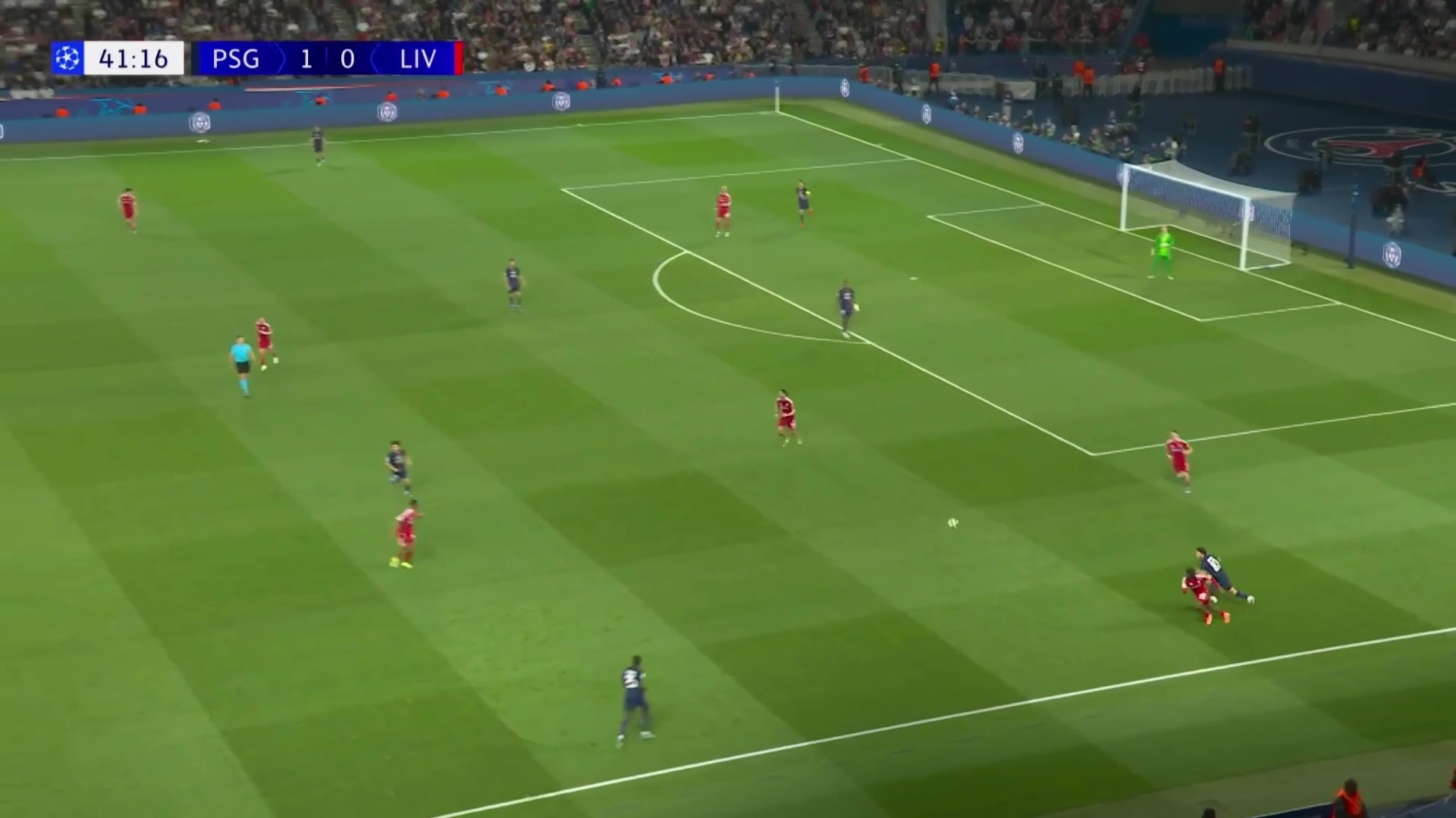 门将绝望杜埃打门变线无解诡异弧线破门巴黎1-0领先利物浦