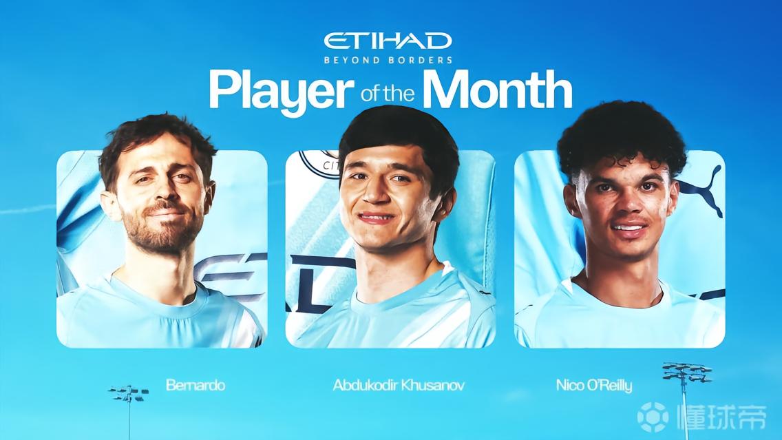 你选谁?曼城4月最佳球员候选:B席、奥赖利、胡桑诺夫